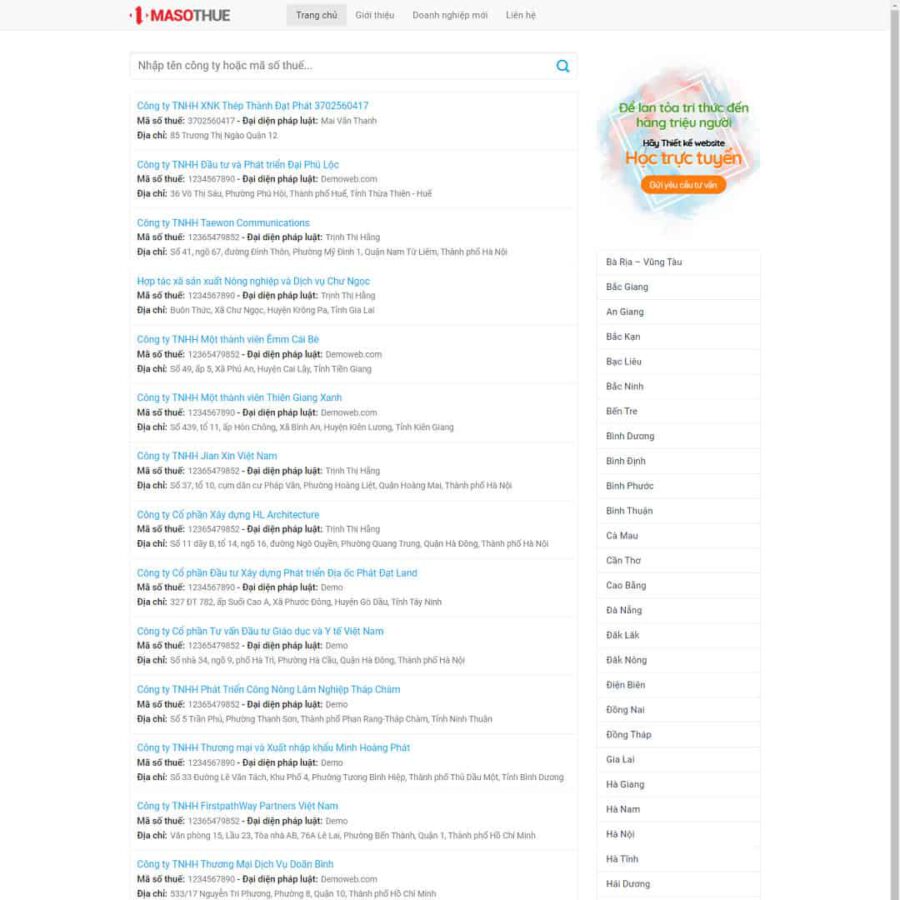 Theme WordPress tra cứu mã số thuế giống ( thongtincongty.com )